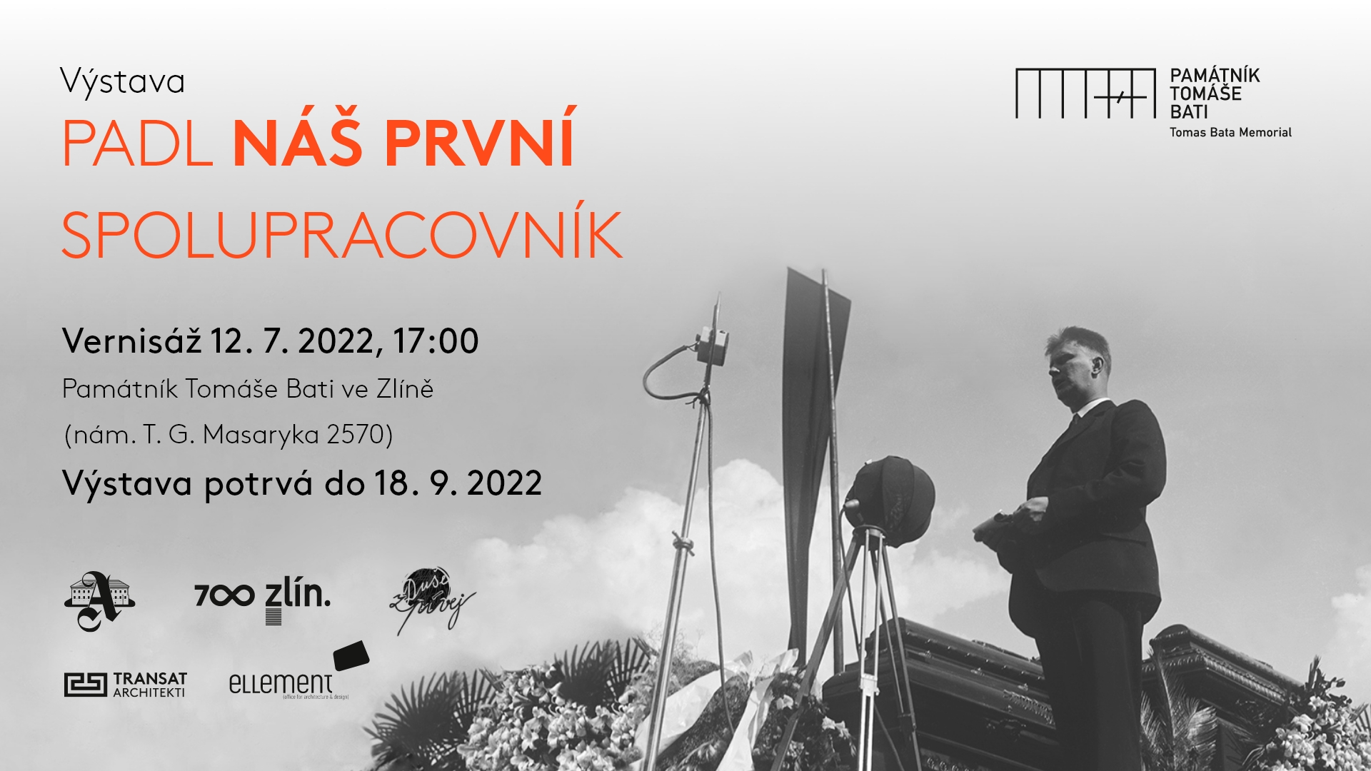 12. července uběhne už 90 let od tragické smrti Tomáše Bati a jeho pilota Jindřicha Broučka. K příležitosti smutného kulatého výročí této události pořádá Památník Tomáše Bati ve Zlíně výstavu „PADL NÁŠ PRVNÍ SPOLUPRACOVNÍK. Pohřeb Tomáše Bati a pilota Jindřicha Broučka.“ Vernisáž proběhne v úterý 12. července od 17:00 a návštěvníci jsou zváni také k prohlídkám se vstupem zdarma od 10:00 do 20:00.